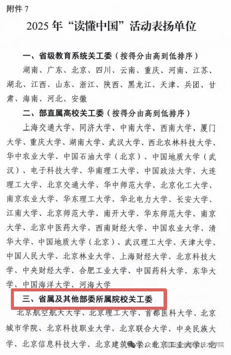 2025年,教育部关工委以“弘扬时代精神,建设教育强国”为主题,组织全国高校开展“读懂中国”活动。自活动启动以来,邵阳工业职院关工委在党委坚强领导与悉心关怀下,主动谋篇布局,充分发挥本地“五老”资源优势,组织学院青年学生深入参与,通过开展校内作品征集、评比推荐等形式,推动关心下一代工作提质升级、增效赋能。