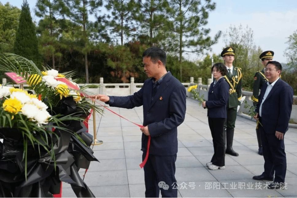 (通讯员:罗茂菲 刘聪 谢佳乐)4月1日,邵阳工业职业技术学院机关第一、第二、第三支部全体党员及学校团员青年代表怀着无比崇敬的心情,齐聚邵阳市烈士纪念园,开展清明祭英烈主题活动。师生们缅怀革命先烈,赓续红色血脉,在传承革命精神中汲取奋进力量。学校党委委员、副院长隆友喜参加活动。