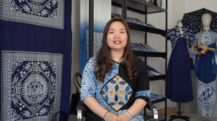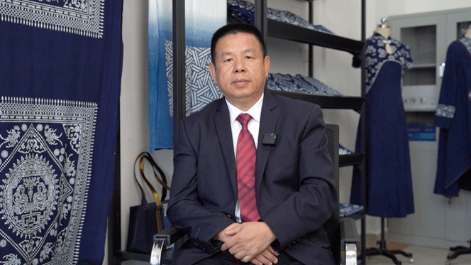 国家级非物质文化遗产蓝印花布印染技艺传承人、服装实训教师赵顺艳接受采访