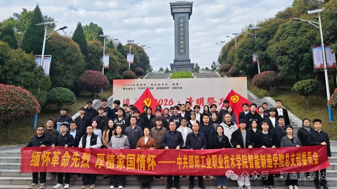 2026年4月1日下午,邵阳工业职业技术学院智能制造学院党总支、团总支及青年志愿者协会联合组织师生代表,赴邵阳市烈士纪念公园举行清明祭扫活动。本次活动旨在缅怀革命先烈,传承红色精神,引导师生在庄严仪式中接受思想洗礼。