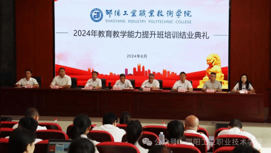 (通讯员:袁余俊明)8月13日下午,邵阳工业职业技术学院举行2024年教育教学能力提升班培训成果展示暨结业典礼。学院党委书记欧阳学出席并讲话,党委副书记、院长李梦奇主持。湖南铁道职业技术学院党委委员、副院长刘志成、易今科,邵阳工业职业技术学院领导李鑫、贺珊刚、王周钦、王思夏以及全体教职工参加活动。