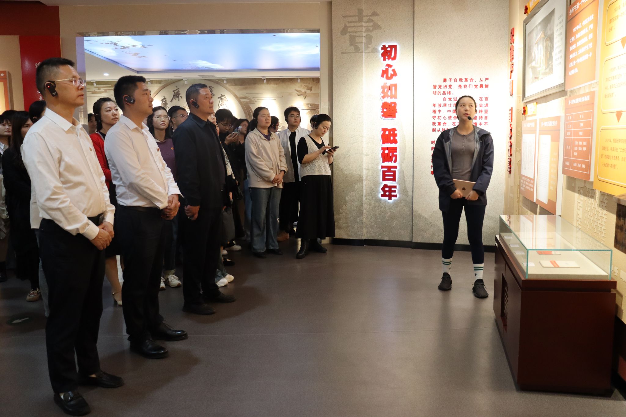 学院教职工们在市廉政警示教育中心认真学习党史