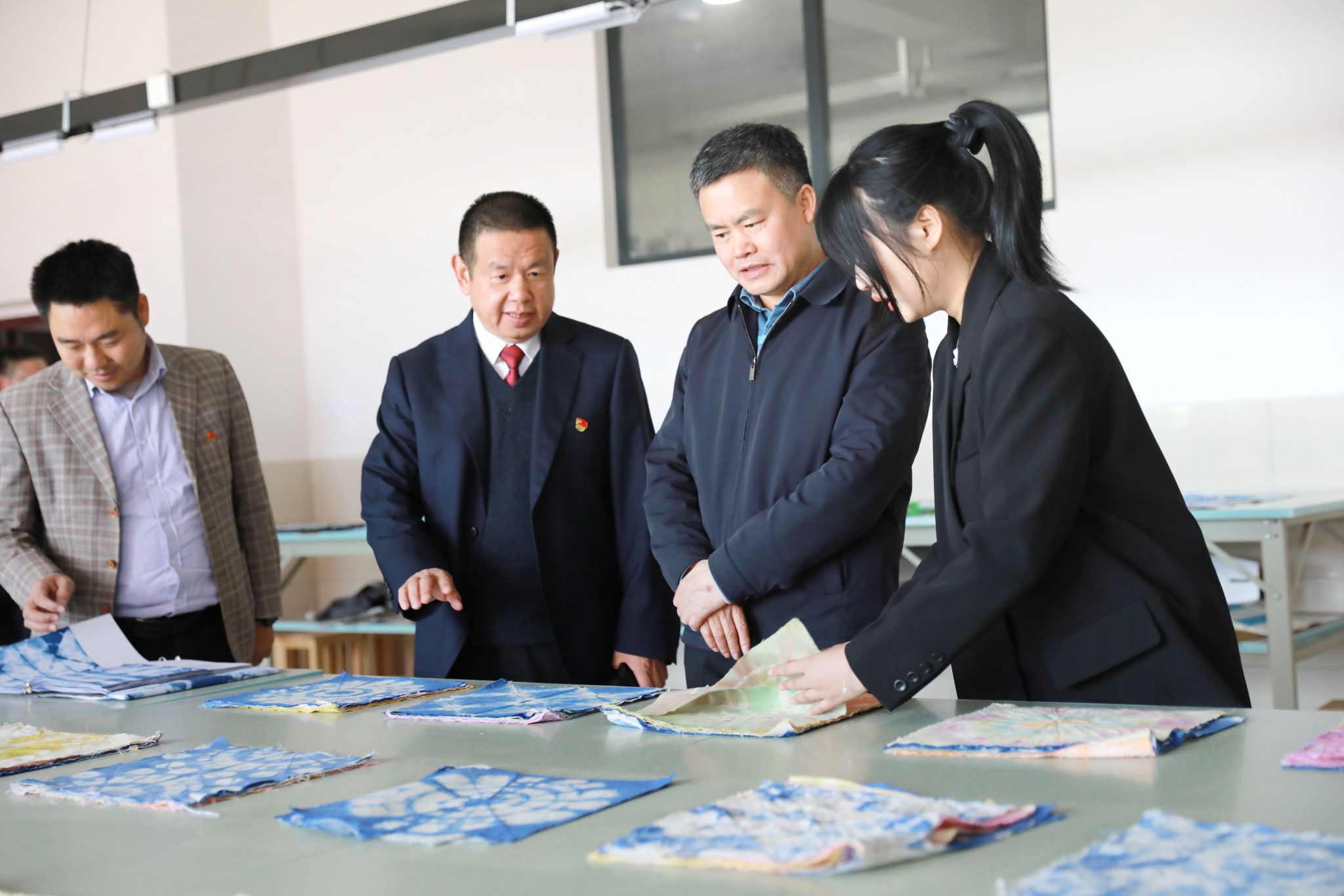 会前,彭良平一行在欧阳学、刘淑芳及其他有关人员的陪同下,实地参观了邵阳工业职业技术学院蓝印花布、新能源汽车实训室。