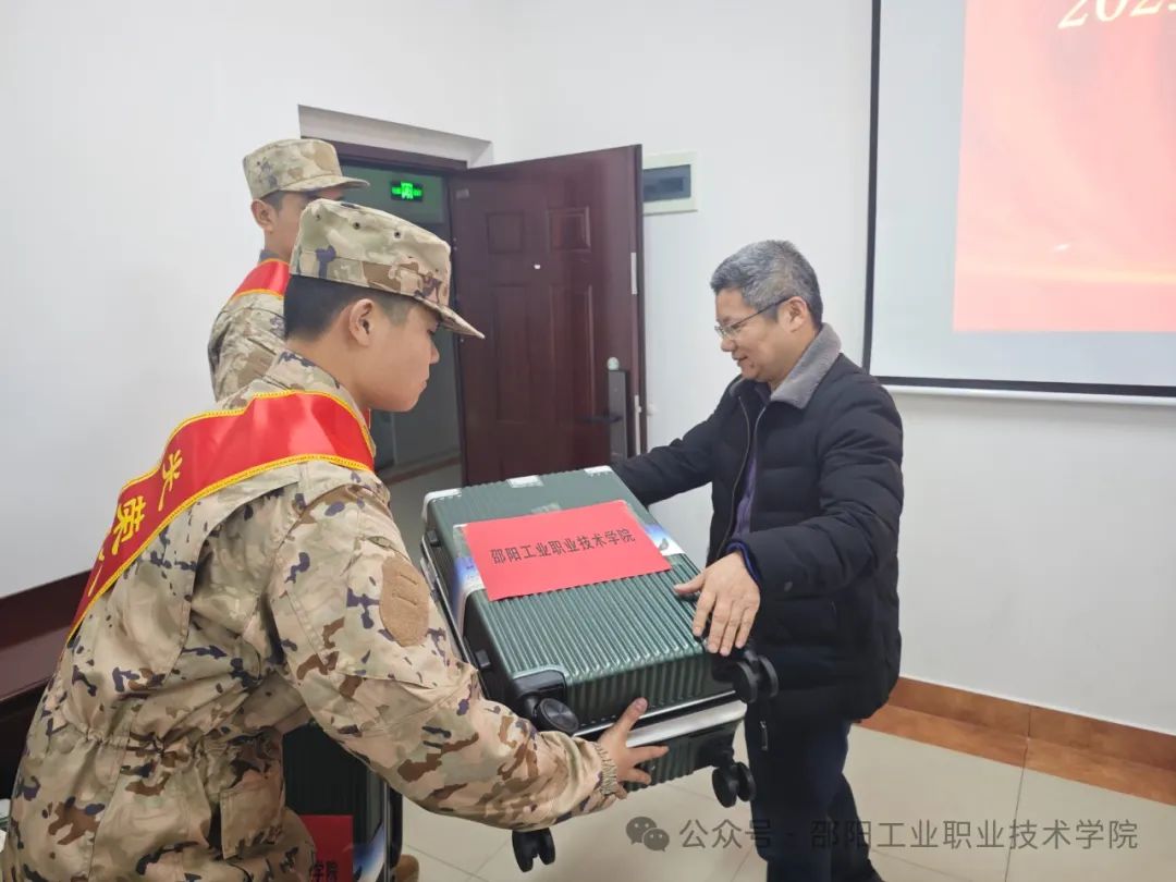 3月14日,邵阳工业职业技术学院举行2025年春季新兵入伍欢送仪式。徐涣均、曹彦文、刘斌、丁俊达等4位优秀青年学子身穿崭新军装,胸戴大红花,即将踏上保家卫国的军旅征程。