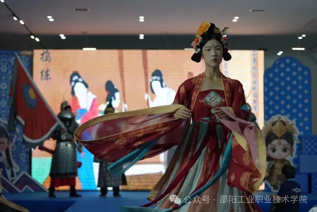 活动现场设置了射箭、汉服妆造体验、蓝印非遗展览以及礼服走秀等多个精彩纷呈的项目。从历史礼仪到技艺演示,我校的专业老师细致入微地讲解了传统文化知识,大家以走秀的形式依次展示了蓝印花布现代礼服、汉、唐、两宋辽金、明代服饰,展现了不同朝代的美学风格与时代风范。