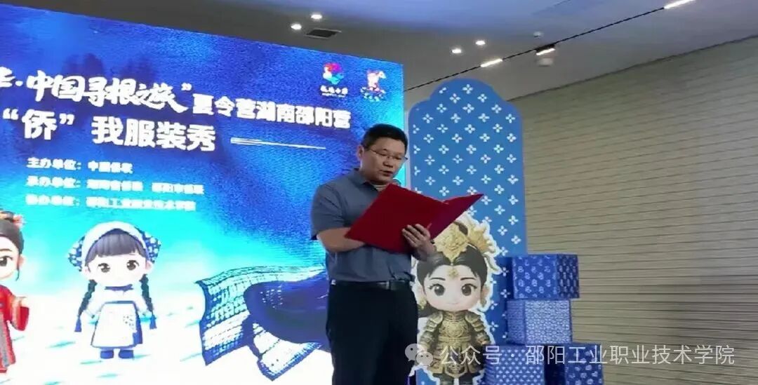 (通讯员:夏凡苏)7月27日下午,由中国侨联主办,湖南省侨联、邵阳市侨联承办的“亲情中华·中国寻根之旅”夏令营湖南邵阳营走进邵阳工业职业技术学院,举办了“侨”我服装秀活动。学院党委委员、副院长贺珊刚在活动上发表了致辞。