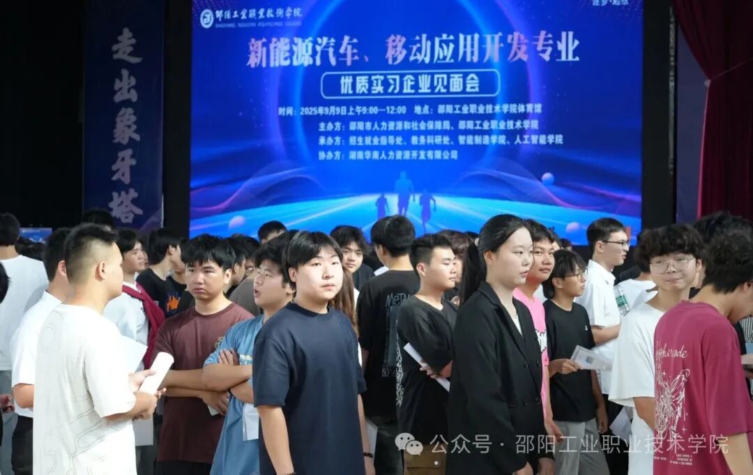 (通讯员:张耘搏)9月9日上午,邵阳工业职业技术学院2023级新能源汽车技术专业、移动应用开发专业优质实习企业见面会在学院体育馆举行。学院党委书记欧阳学出席活动,学院党委副书记、院长李梦奇主持大会,邵阳市人社局有关领导参加活动。