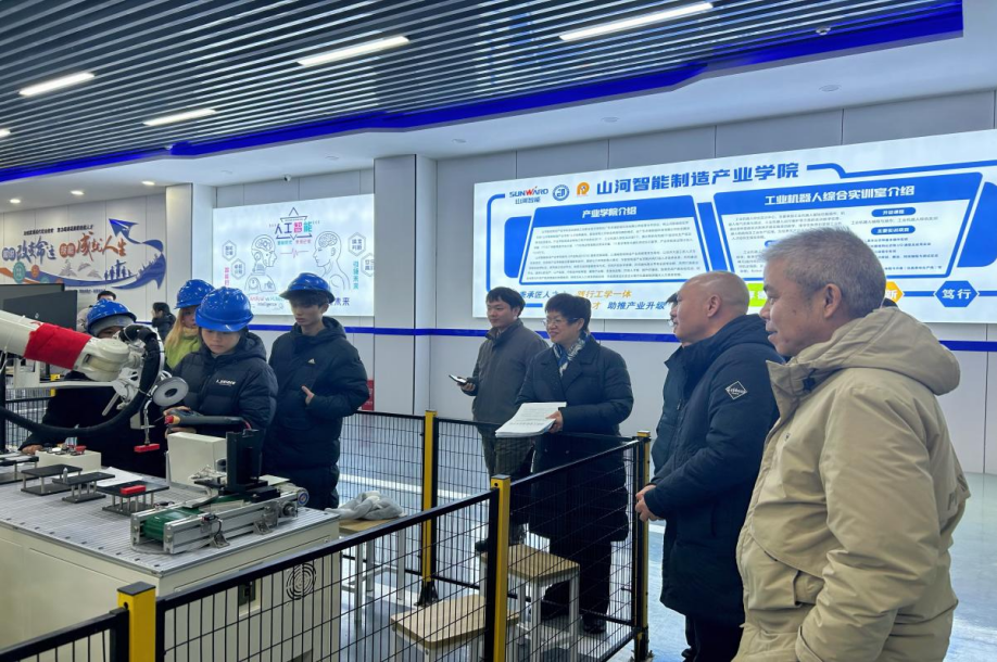 座谈会后,屈主任一行深入我校智能制造学院、数字艺术设计学院实地考察办学场地,察看实训平台建设、学生实操情况及校企联合项目开展情况。调研过程中,屈主任充分肯定了我校在合作机制创新、人才培养及收费规范管理等方面的做法,希望学校进一步深化产教融合,为区域产业升级提供人才支撑。