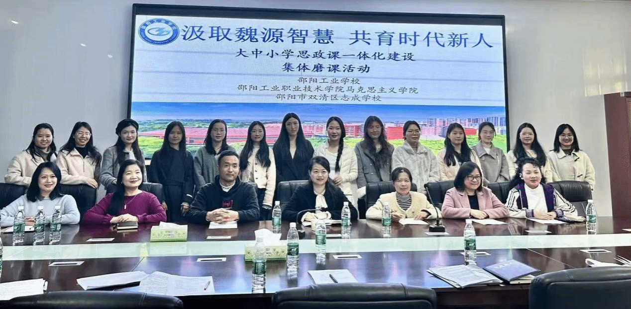 (通讯员:郑晓晴)为进一步推进大中小学思政课一体化建设,贯彻落实立德树人根本任务,11月27日下午,邵阳工业学校、邵阳工业职业技术学院马克思主义学院、邵阳市双清区志成学校三校思政教育同仁齐聚邵阳工业学校,举办了以“汲取魏源智慧 共育时代新人”为主题的大中小学思政课一体化建设集体磨课活动,共同探讨思政育人新路径,共同谱写一体化建设新篇章。