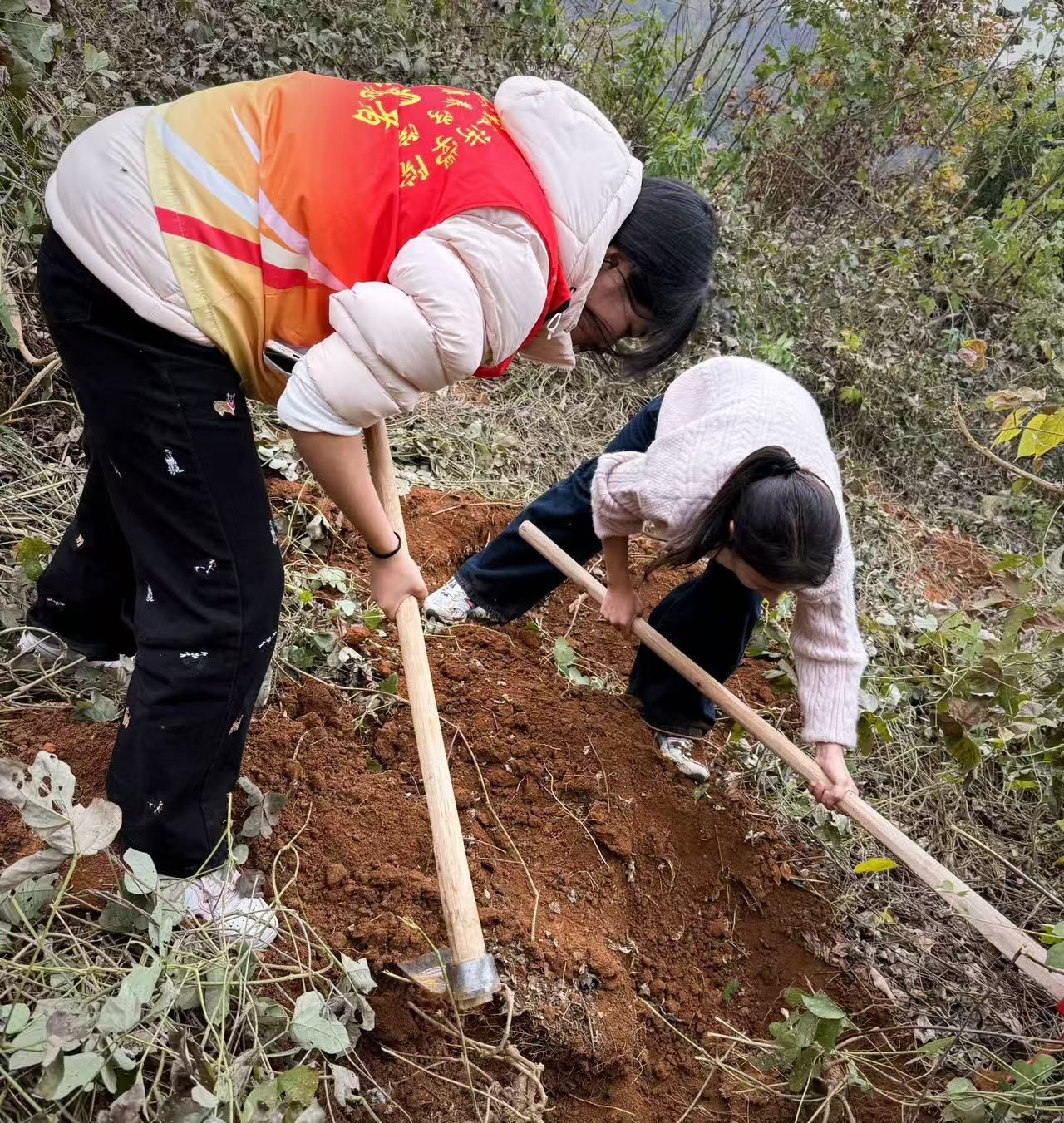 下午,全体师生前往葛根种植基地,开展劳动实践。大家分组协作,学习采挖技巧,亲身体验农耕过程。马克思主义学院教师结合劳动场景,开展了一堂“行走的思政课”,现场讲授“马克思主义劳动观与当代价值”,引导学生在劳动中思考劳动社会发展与个人成长的关系。