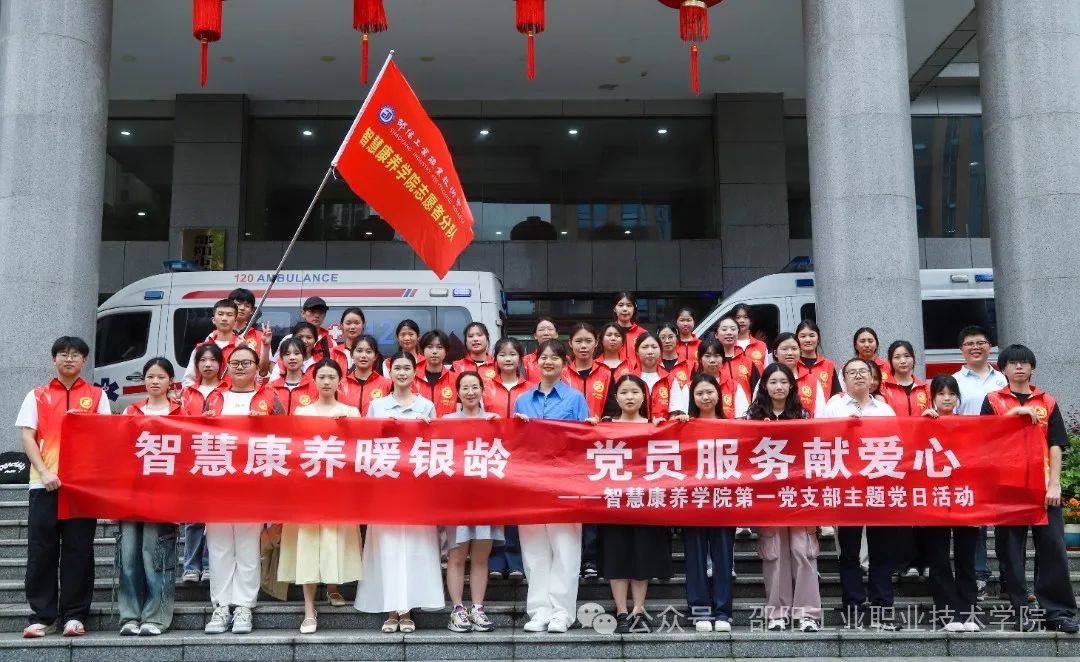(通讯员:阳云飞 孙玮希 夏琳)2025年5月16日上午,邵阳工业职业技术学院智慧康养学院携手学院第一党支部,赴邵阳市社会福利院开展“党建+产教融合”实践活动。本次活动以党建为引领,将专业实践与养老服务深度结合,通过实地研学、科普宣讲、文艺互动等形式,展现了“党建红”与“康养蓝”的协同育人成效,为养老服务事业发展注入新动能。党建领航构建康养服务“红色矩阵”活动伊始,在智慧康养学院第一党支部的统筹下,师生党员佩戴党徽亮明身份,...