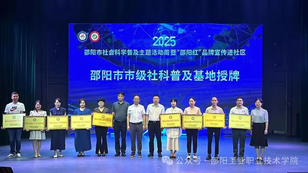 (通讯员 罗薇)6月11日上午,邵阳市2025年社会科学普及主题活动周暨“邵阳红”品牌宣传进社区启动式在邵阳市文化艺术中心举行。本次活动由湖南省社科联和中共邵阳市委宣传部指导,邵阳市社科联与邵阳市农业农村局联合主办,邵阳市文化馆和邵阳红优质农产品公共品牌促进会共同承办。活动开场,我校非遗蓝印花布与传统甲胄服饰短片以开场秀形式入选优秀社科普短视频,向莅临嘉宾精彩呈现。同时,我校与宝庆卫传统武备研究会联合呈现了传统服饰展示节目《...