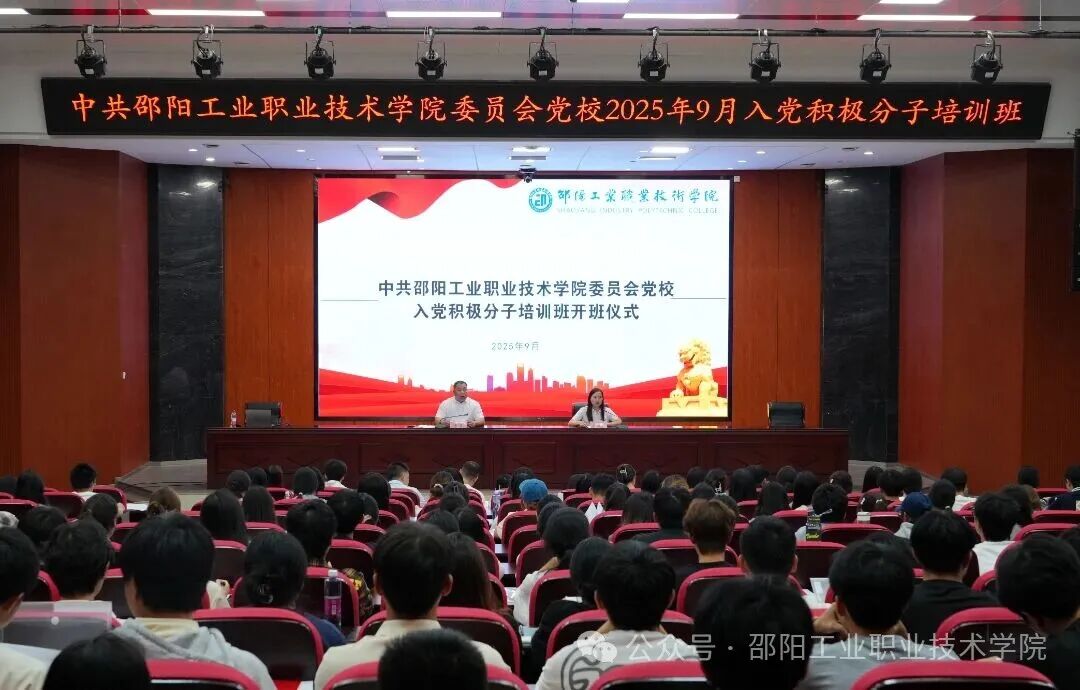 (通讯员:陈嘉琪 吕发)9月22日至28日,邵阳工业职业技术学院党委党校举办2025年第一期入党积极分子培训班,全校212名入党积极分子参加培训,校领导李鑫、王思夏等出席开班仪式。开班仪式在庄严的国歌声中拉开帷幕,全体与会人员肃立高唱国歌,现场气氛庄严隆重。在开班仪式上,党委副书记、党校校长李鑫发表讲话。他勉励广大学员在学习中实现“三个提高”,一是提高思想认识,认识到入党积极分子对个人成长和学院发展的重要意义;...