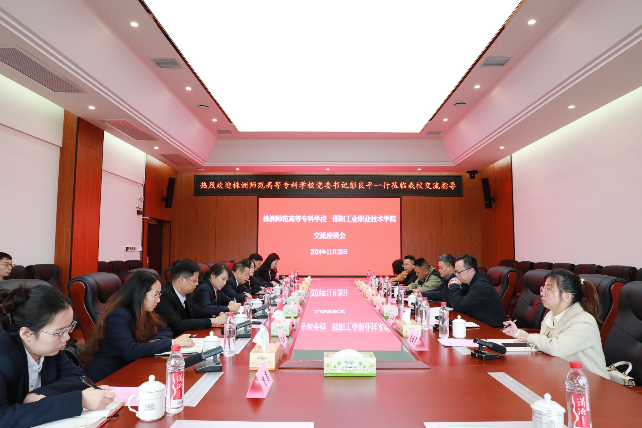 (通讯员:伍丹、王智)11月28日,株洲师范高等专科学校党委书记彭良平一行来邵阳工业职业技术学院开展智慧养老专业建设调研。邵阳工业职业技术学院党委书记欧阳学,党委委员、副院长刘淑芳,株洲师范高等专科学校党委委员、副校长邹华及两校相关部门人员出席座谈会。彭良平介绍了株洲师范高等专科学校基本情况和近年来开展的“两个转型、一个统筹”等重点工作,并高度肯定了邵阳工业职业技术学院的开拓精神和办学成果。欧阳学对株洲师范高等专科学校一行的到来表示热烈欢迎,...
