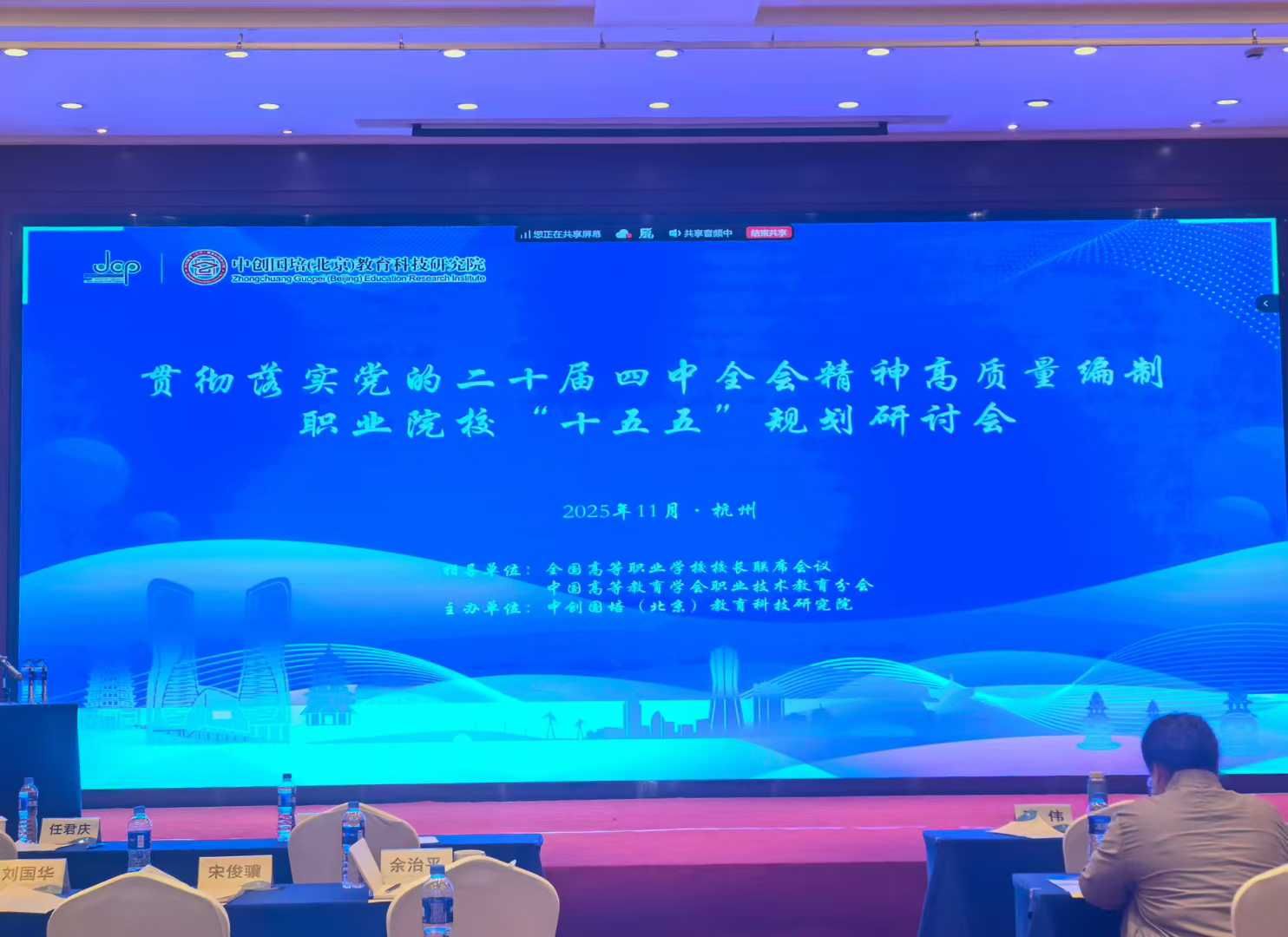 为科学谋划我校“十五五”时期发展蓝图,提升规划编制工作的前瞻性、系统性与可操作性,2025年11月20日至23日,学校质量监控中心规划干事石佩瑶赴杭州参加了“贯彻落实党的二十大十二届四中全会精神 高质量编制职业院校‘十五五’规划研讨会”。