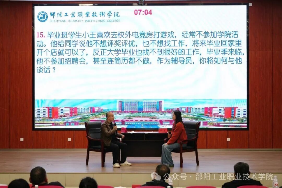 16日的谈心谈话环节,通过模拟学业困惑、情感危机、人际矛盾等真实工作场景,重点考察辅导员对学生的了解程度、沟通引导技巧及解决实际问题的能力。参赛选手沉着应对、循循善诱,既展现了扎实的业务功底,又体现了对学生成长的深切关怀。
