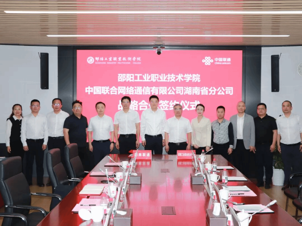 (通讯员:刘斐)4月20日上午,邵阳工业职业技术学院与中国联通湖南省分公司举行了战略合作签约仪式。学校党委委员、副院长刘淑芳与湖南联通政企BG常务副总裁刘长勇签署校企合作战略协议。学校党委副书记、院长李梦奇,湖南联通党委委员、副总经理杜鹏,中国联通中南研究院院长雷鸣等双方参会领导共同见证签约。此次合作将进一步推动校企资源共享、优势互补,助力学校培养高素质技术技能人才,为区域数字经济发展注入新动能。