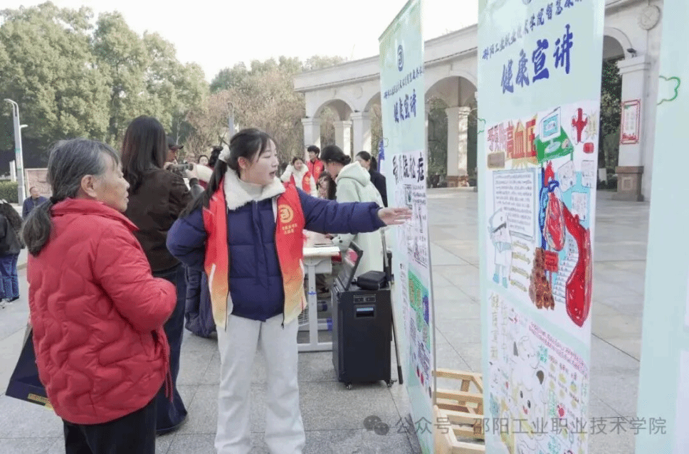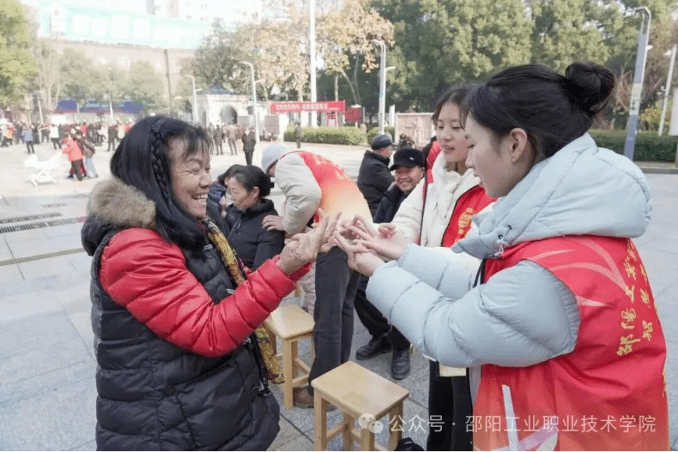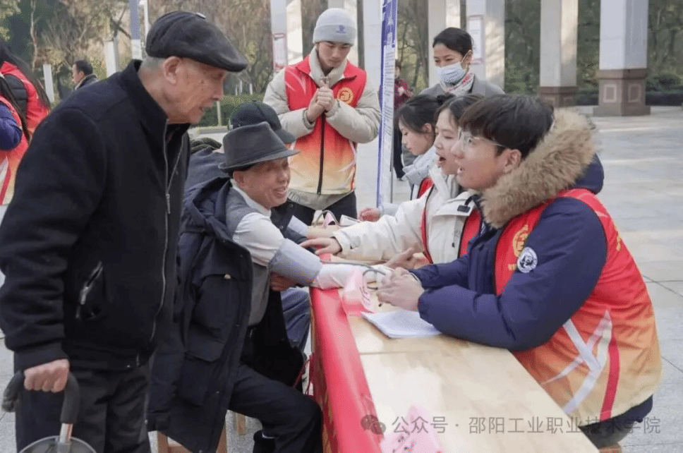 (通讯员:匡航宇)1月11日,邵阳工业职业技术学院智慧康养学院组织党员教师、团干部、入党积极分子及专业技能骨干,走进邵阳市城南公园开展 "青春践初心 --智慧康养进社区・红色基因代代传"主题志愿服务活动,将专业课堂延伸至基层一线,为老年群体送上全方位、个性化的健康服务,以实际行动助力邵阳市 "十五分钟养老服务圈" 建设。