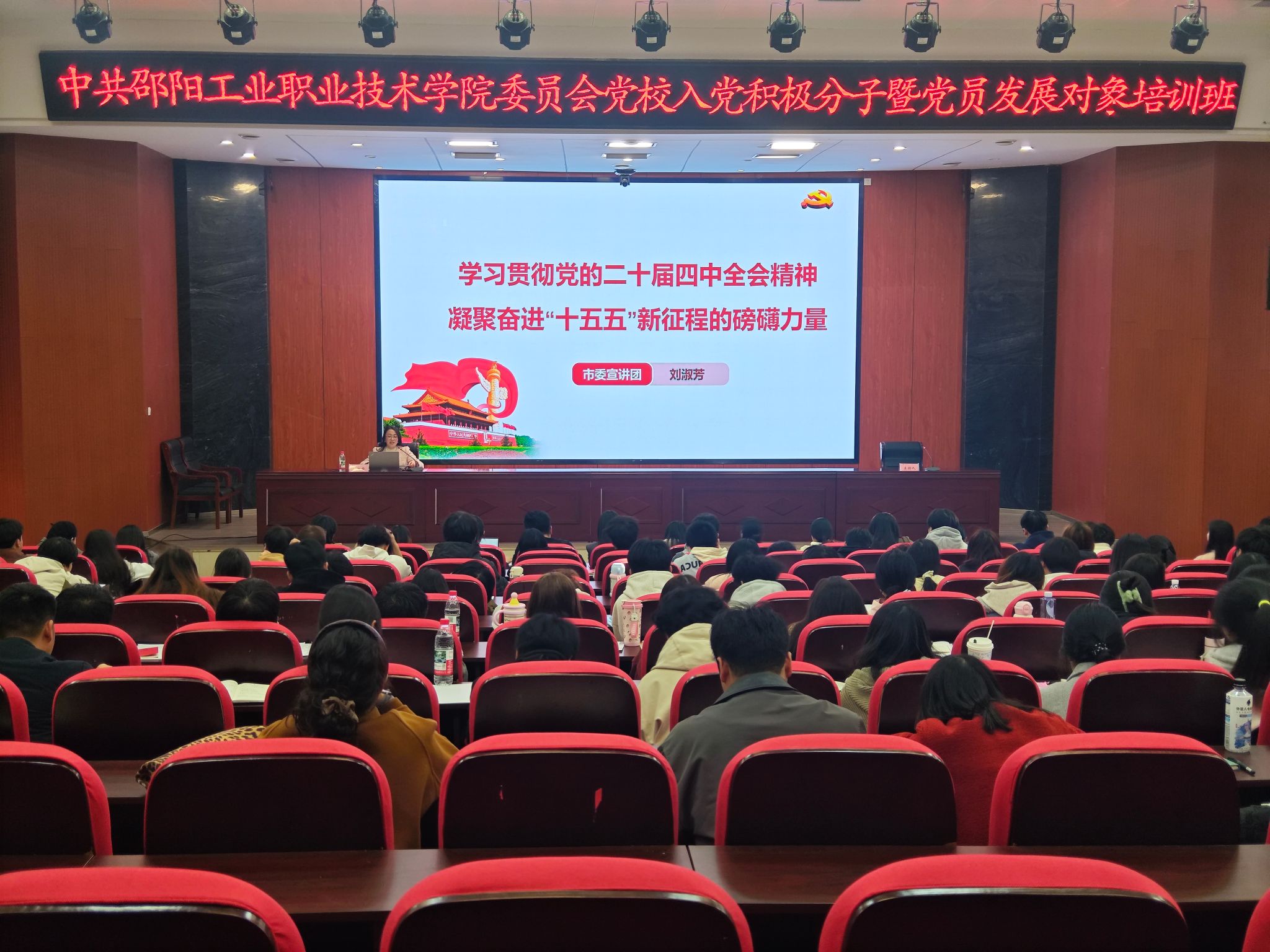 11月28日至30日,邵阳工业职业技术学院党委党校第三期入党积极分子暨党员发展对象培训班在综合办公楼多媒体报告厅举行。学院党委副书记、党校校长李鑫出席开班式并讲话、授课,党委委员、副院长刘淑芳受邀作专题宣讲,191名入党积极分子和党员发展对象以及学院全体党务工作者参加培训。