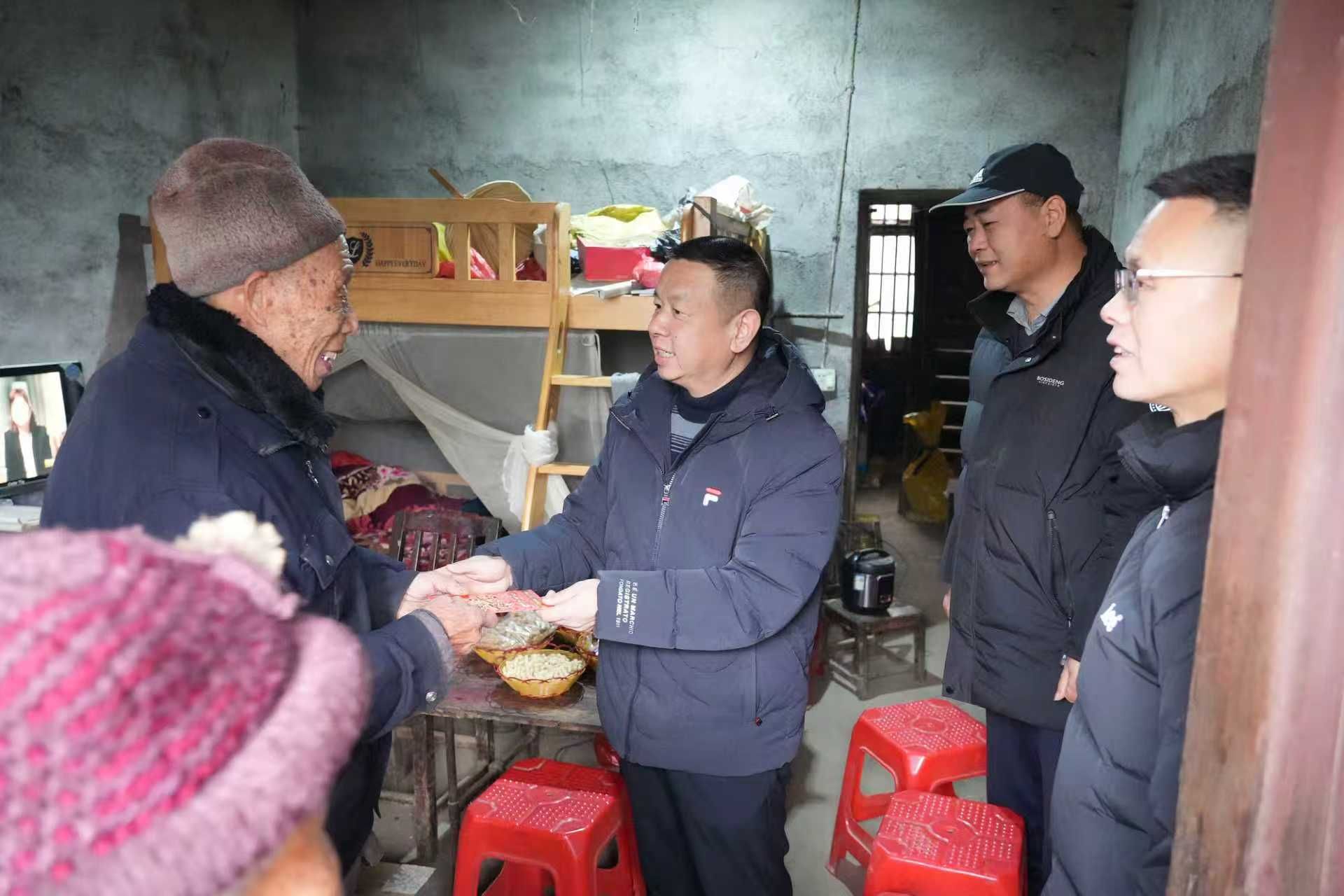 在学校定点帮扶的邵阳县七里山园艺场木铎村,欧阳学走进困难群众代表家中,细心查看居住环境,关切询问他们的饮食起居、健康状况和生活需求,祝愿他们健康长寿、阖家幸福,要求学校驻村工作队始终把群众冷暖放在心上,勤走访、常联系、多关心,兜紧兜牢民生底线,确保每一位群众都能温暖过节、安心过年。