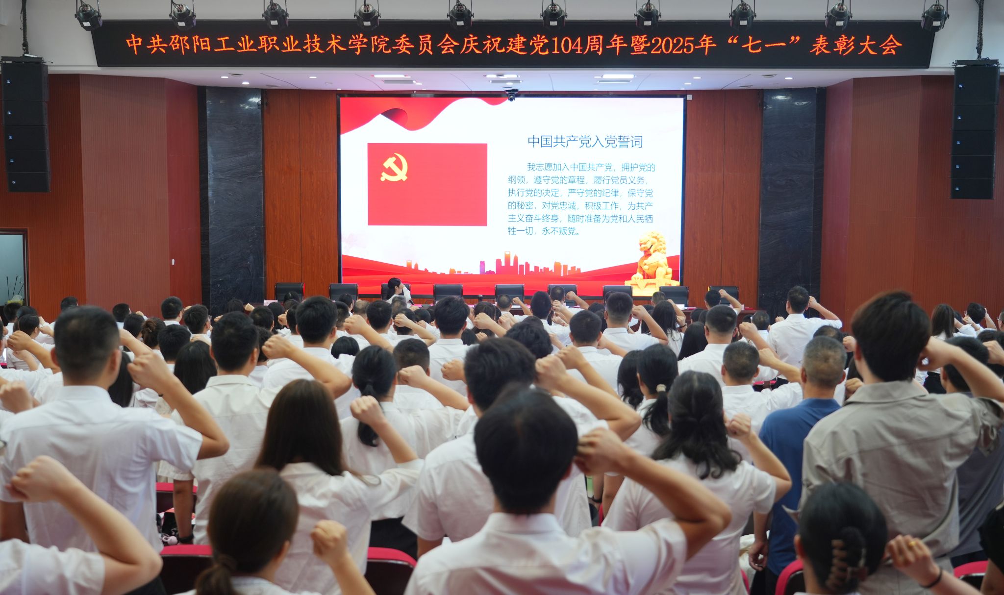 6月26日,邵阳工业职业技术学院召开庆祝建党104周年暨“七一”表彰大会。党委书记欧阳学出席会议并讲授专题党课,大会由党委副书记、院长李梦奇主持。校领导班子成员、全体基层党组织书记、全体党员、入党积极分子参加会议。