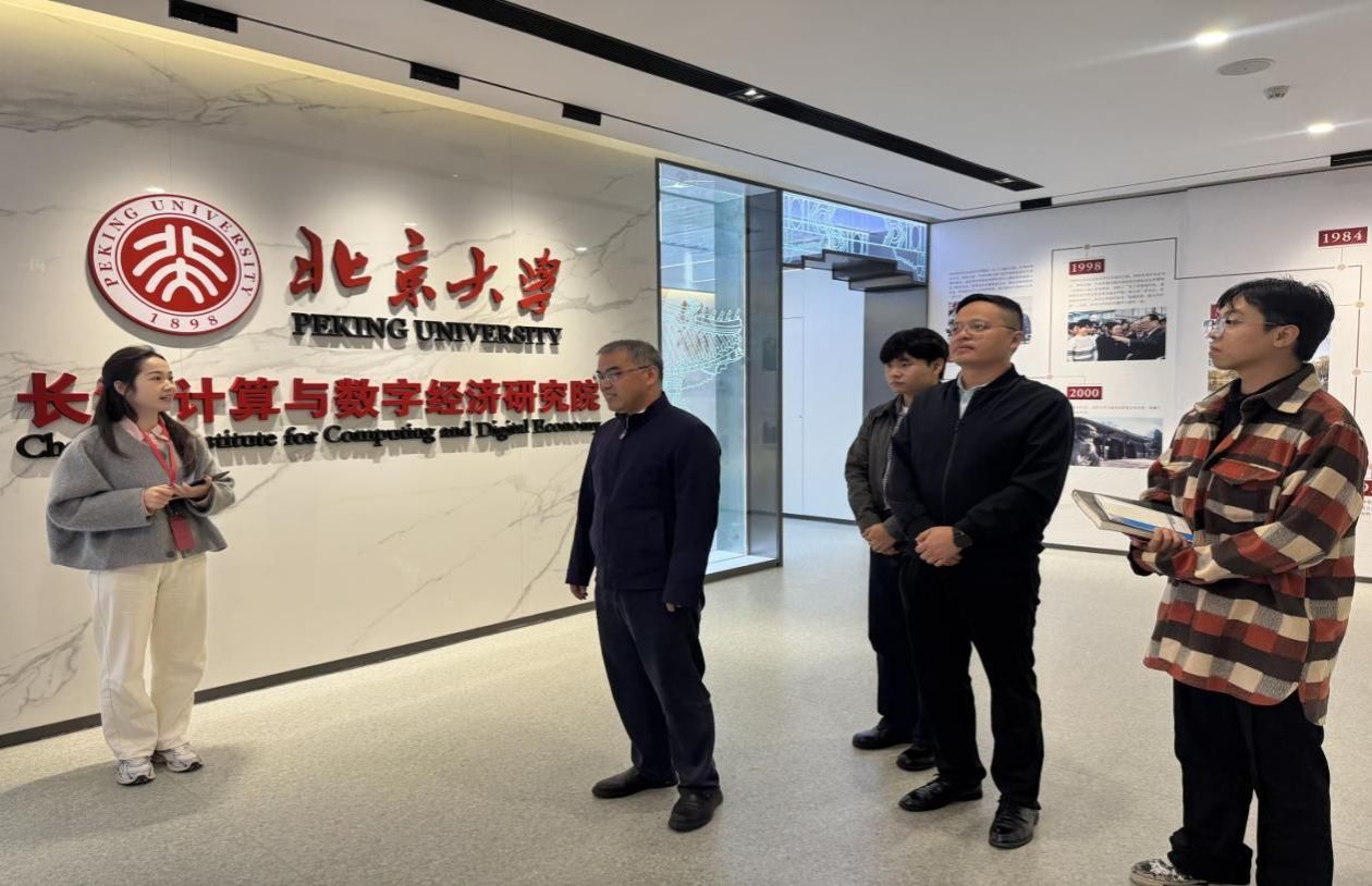 随后,考察组前往北京大学长沙计算机与数字经济研究院。在研究院科研成果展厅,考察组了解到数字经济领域的前沿技术与科研动态,重点围绕数据标注行业标准制定展开座谈。研究院专家分享了数据标注国家标准、行业规范的最新研究进展,为学院对接高端科研资源、提升数据标注专业建设层次拓宽了思路。