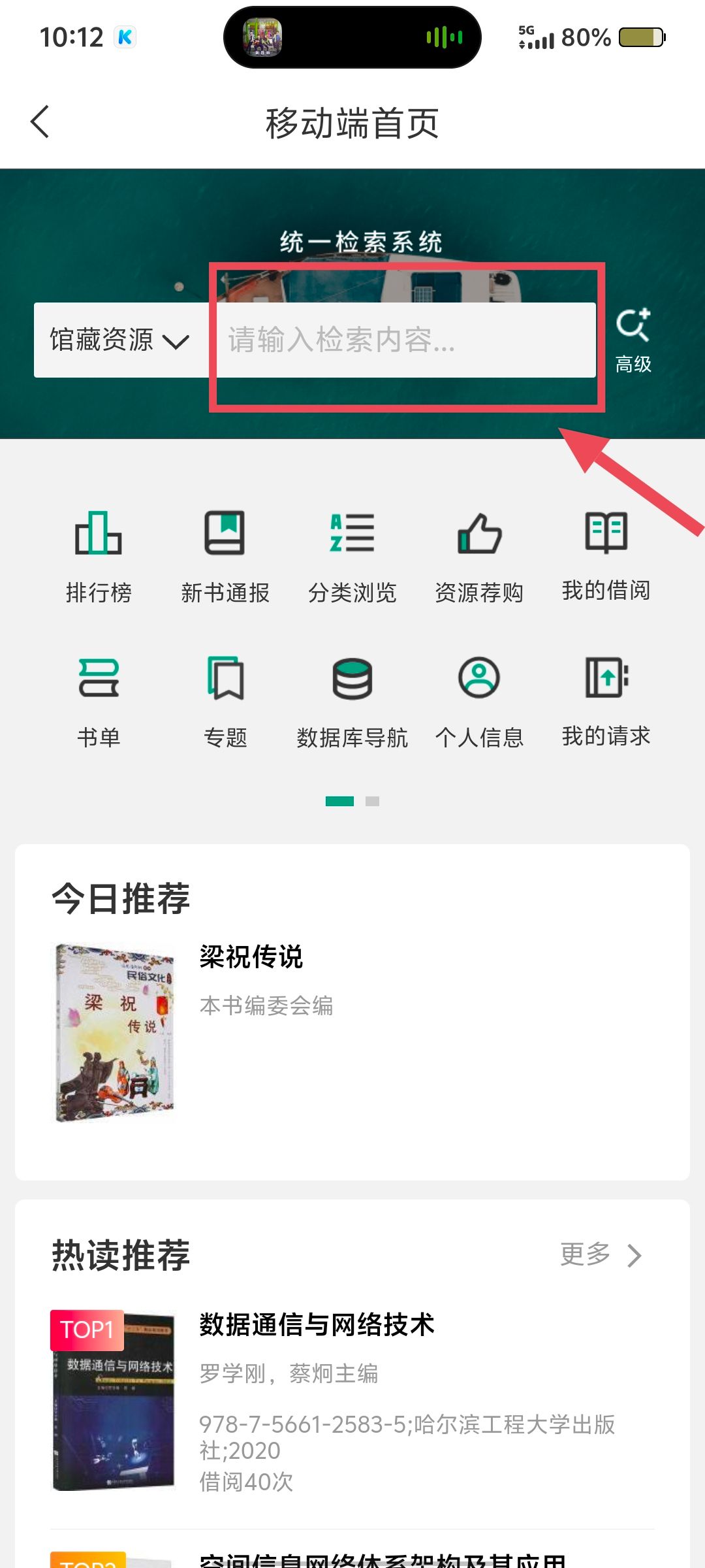 一、打开学习通APP,进入馆藏资源统一检索页面
