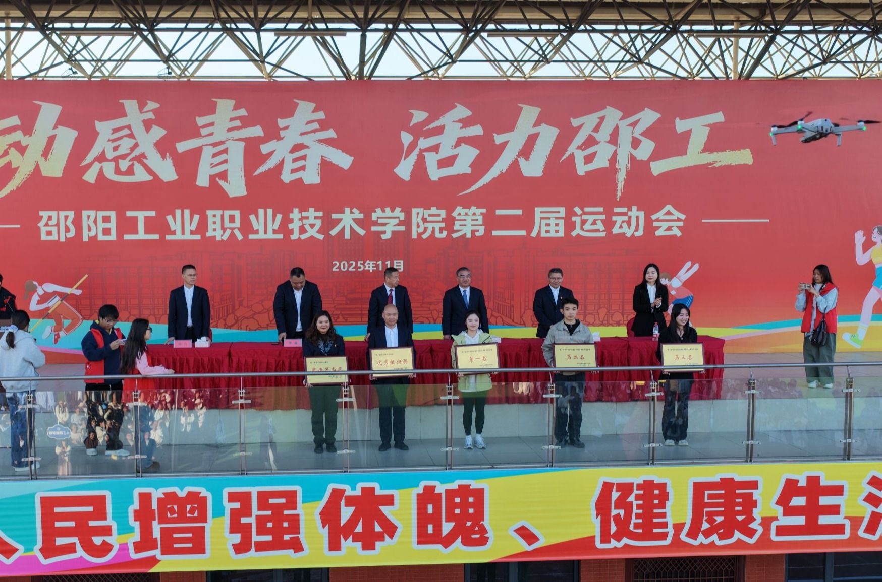 2025年11月13日下午,邵阳工业职业技术学院第二届学生田径运动会暨第二届教职工运动会在学院田径运动场圆满闭幕。学校党委书记欧阳学,党委副书记、校长李梦奇,其他在家校领导,各职能部门、二级学院负责人出席闭幕式。