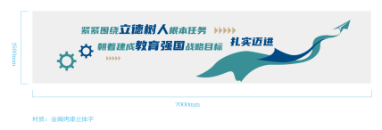 3 | 紧紧围绕立德树人根本任务,朝着建成教育强国战略目标扎实迈进 | 墙面1.5×7 | 金属烤漆立体字 |