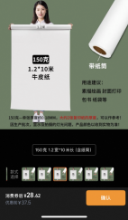 70 | 150克长卷白牛皮纸 | 1.2宽*10米长(含纸筒) |