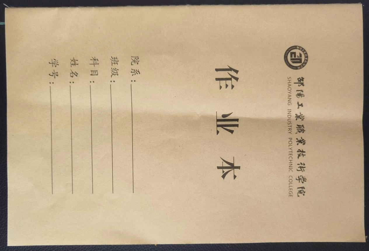 一、项目名称:邵阳工业职业技术学院2025年秋季学期学生作业本。
